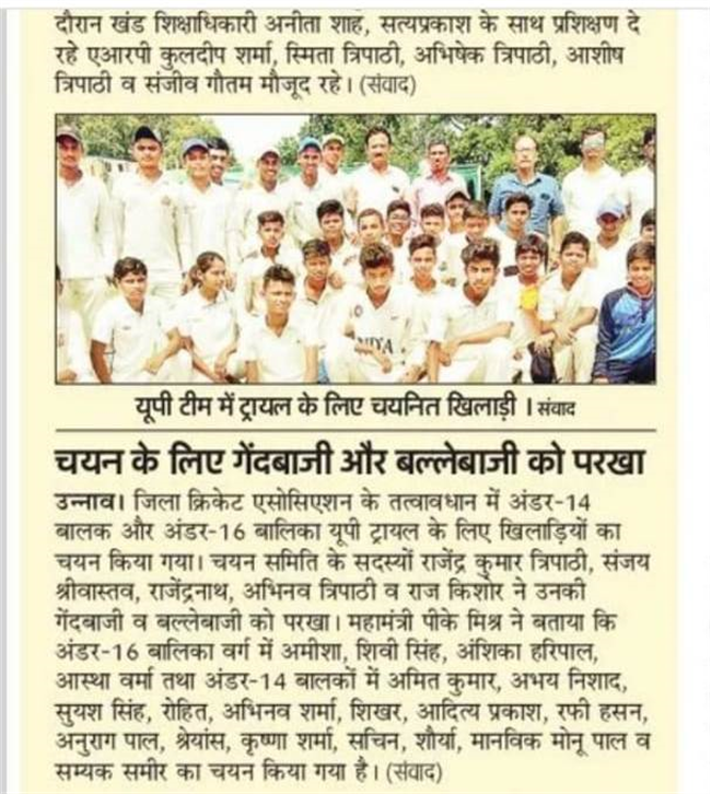 Event: Samyak Sameer Srivastava selected by District Cricket Association