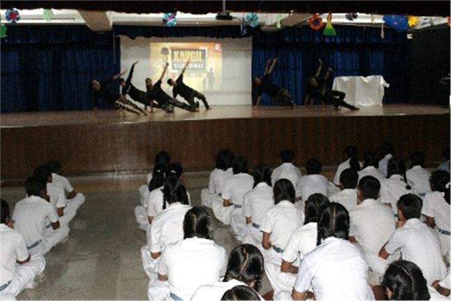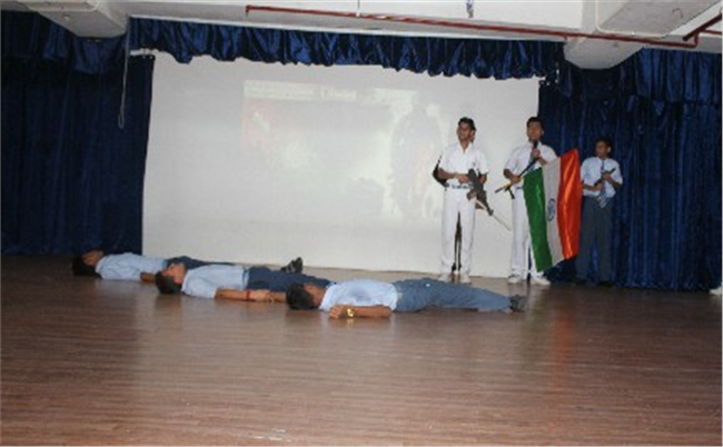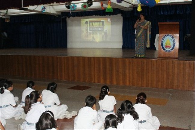 The theme of the 20th anniversary of the Kargil Vijay Diwas -‘Remember, Rejoice and Renew’. The theme reflects the emotion of the countrymen that we remember our martyrs by revisiting their sacrifices, we ‘rejoice’ by celebrating the victory in Kargil and we renew our resolve to safeguard the honour of the Tricolour. In this context students were also shows a short movie based on Kargil heroes. Students classes 9th and 11th enacted the Kargil scene paid their homage to the martyrs. On this occasion Principal ma’am motivated children’s to serve their country and value sacrifices of our warrior.