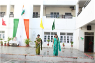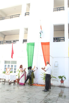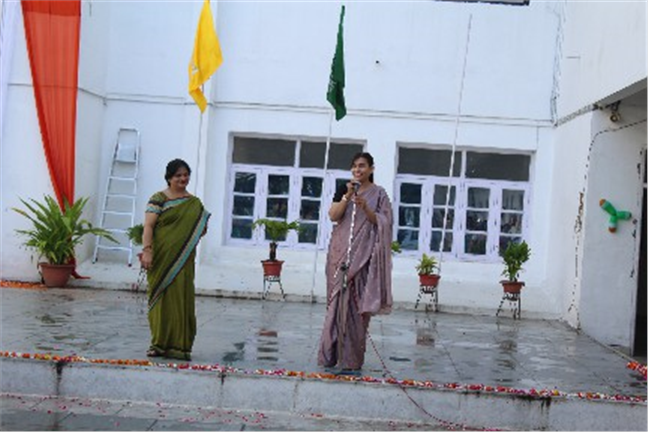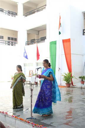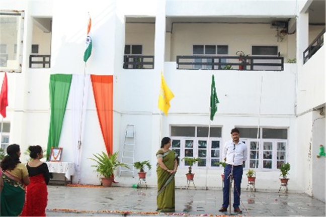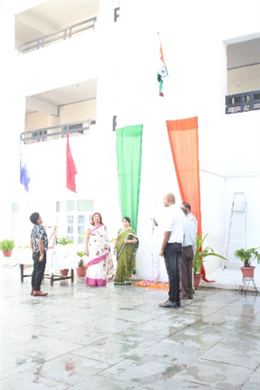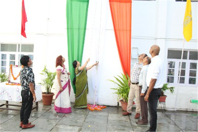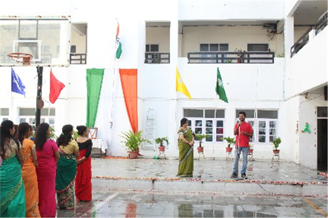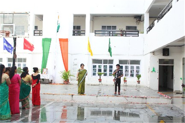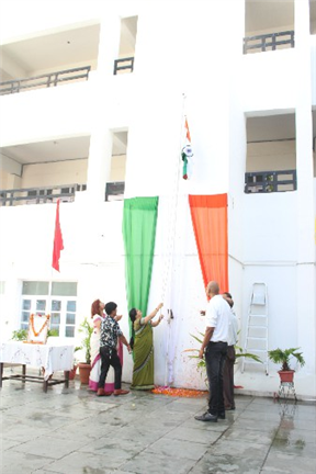 Flag was noised by the Principal ma'am. School was decorated in tricolor. Students staged a myriad of program. Teacher also sang patriotic song and pledge to work relentlessly for the progress of school and nation.