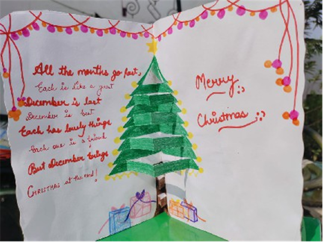Description: On 25th of December, our school celebrated both Christmas and New Year. To set a perfect example of secularism, we celebrate all the festivals in our school.There was the Christmas Tree decorated with lamps and toys and flowers in one corner of the hall. We had also decorated the stage with Merry Christmas and Happy New Year tags. We celebrated both the events ( Christmas Day and Welcoming of New Year ) together. It means double fun for us.