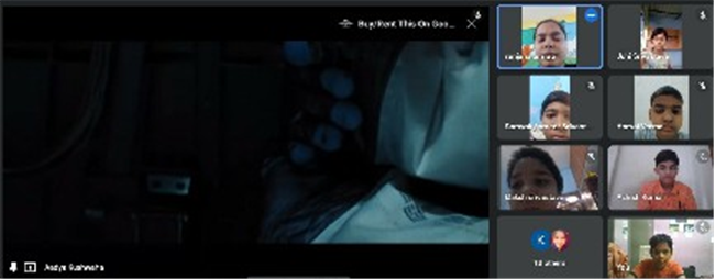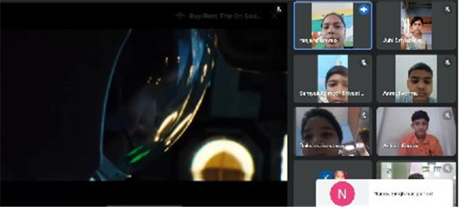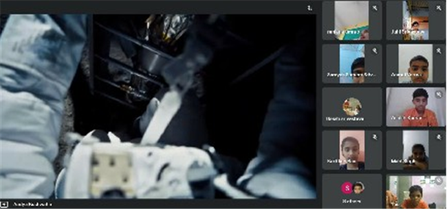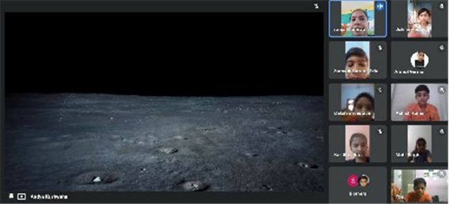 There was a programme conducted by our school for the students of grade 6th & 7th in which authentic(NASA) videos of MOON LANDING were shown to the students with Social Science teachers' explanation. Students' jeal was found during the program