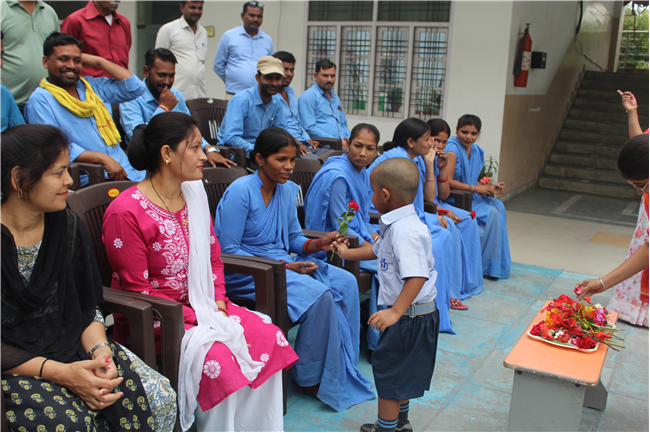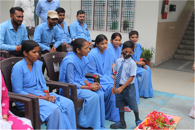 Description: Labour Day is one of the most important days in May and is celebrated across the world. Antarrashtriya Shramik Diwas or Kamgar Din is the name given to Labour Day in India. Lucknow Public School, Kalindi Park Branch celebrated this day by paying respect to the people who work for the school. The teachers briefed the children about Labour Day and its importance. The children expressed gratitude by giving flowers to the sub staff, bus driver, peon, guard etc. the support staff were over whelmed by this act of thankfulness and enjoyed the day. The Principal of the school Mrs. Manisha N Pathak shared her views on the occasion. She said that they are unsung heroes, backbone of our society, who work day / night for us. She thanked each one and said that they work tirelessly and they deserve due respect and recognition. Over all it was a fruitful day which taught our little ones to be thankful to everyone. They also learned the dignity of labour.