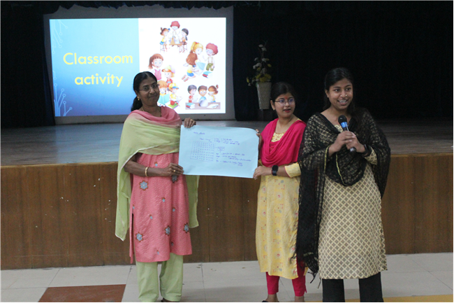 Ms. Cynthia Srivastava from preprimary, Ms. Suman Chand from Junior and Ms. Priyanka Pandey from senior section had wonderfully conducted the session. Principal Ms. Manisha N. Pathak actively participated in the session to encourage and support the staff.