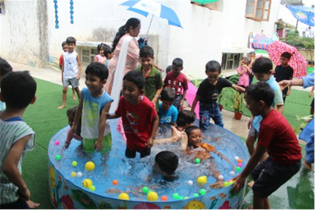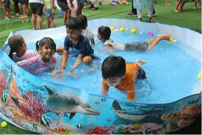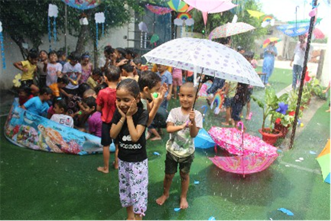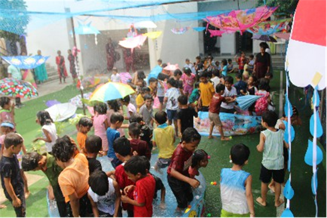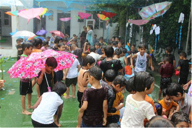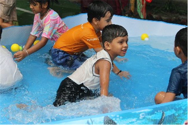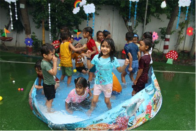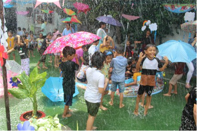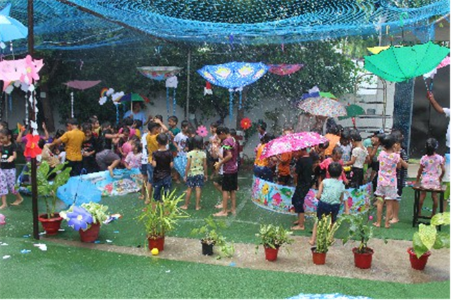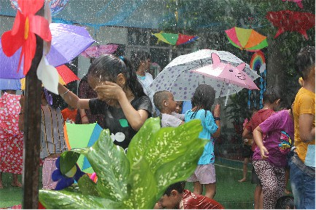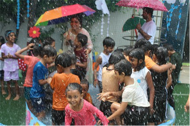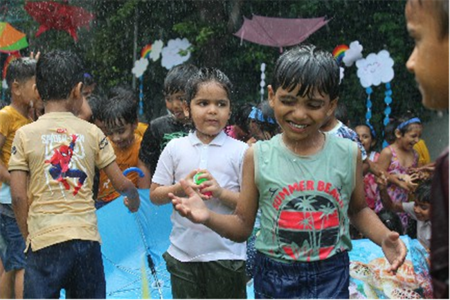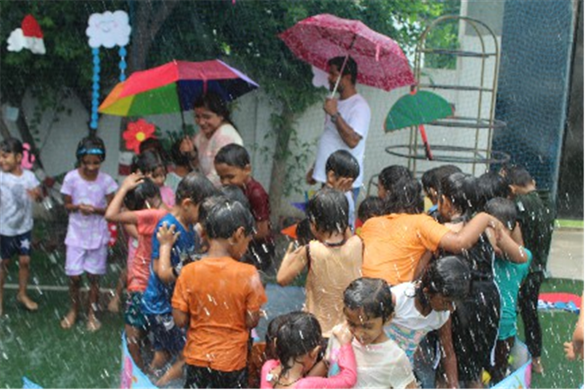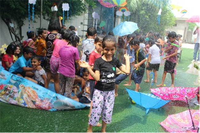 A fun-filled Rain Dance Party was organized on 23rd July 2025 (Wednesday) for the children. The area was decorated with colourful umbrellas different types of props like rainy bow , flowers cloud with drops and plants. Kids enjoyed dancing under water sprays with music, celebrating the joy of the rainy season. It was a refreshing and enjoyable experience for all.