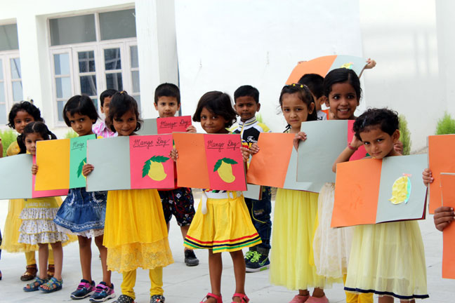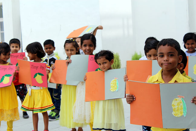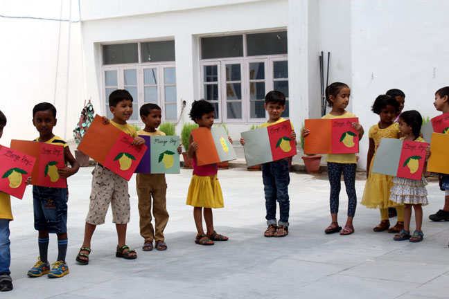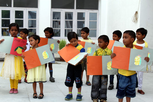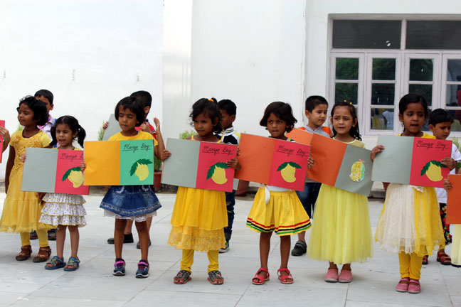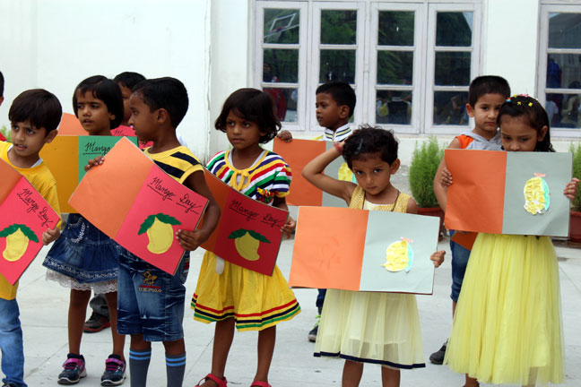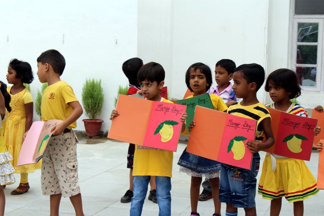 Description: The International Mango Festival, held annually. It is organised by the Delhi Tourism and Transportation Development Corporation (DTTDC) in collaboration with the Agricultural and Processed Food Products Export Development Authority, the National Horticultural Board and the New Delhi Municipal Council. This Day was also celebrated in our school on 14th July' 2016, where students took part in singing, playing drawing and other activities in the primary wing of our school.