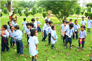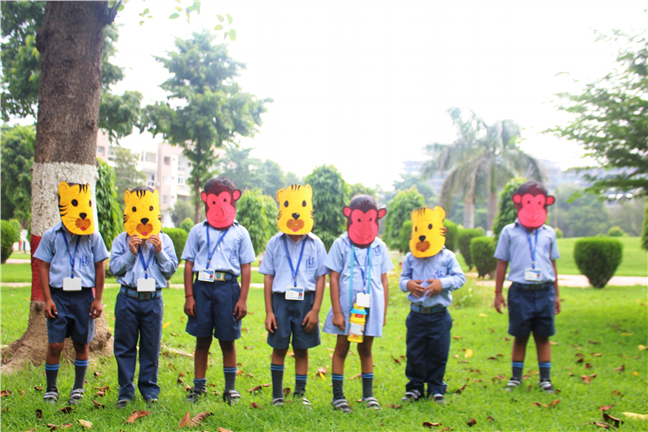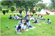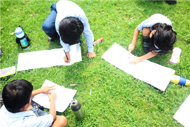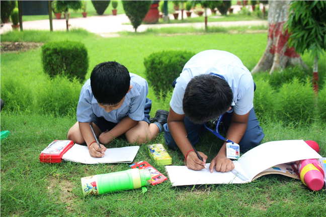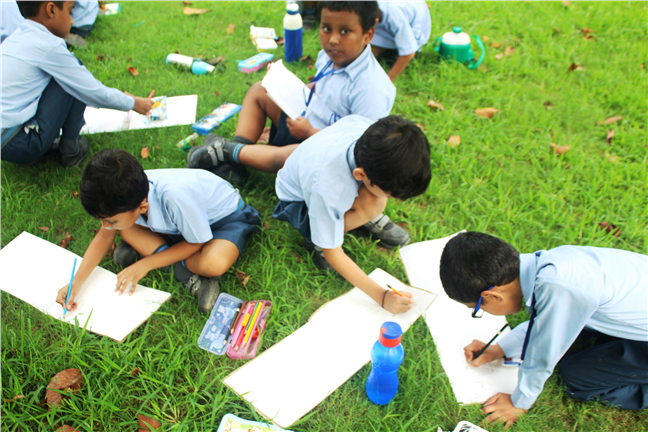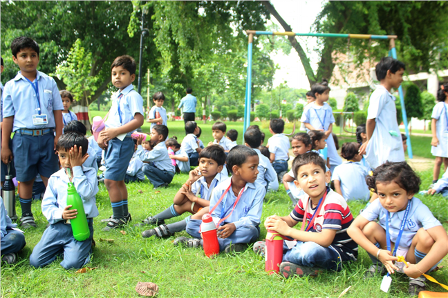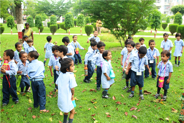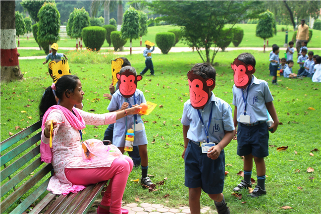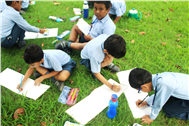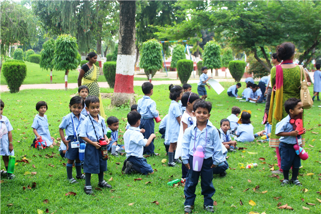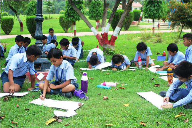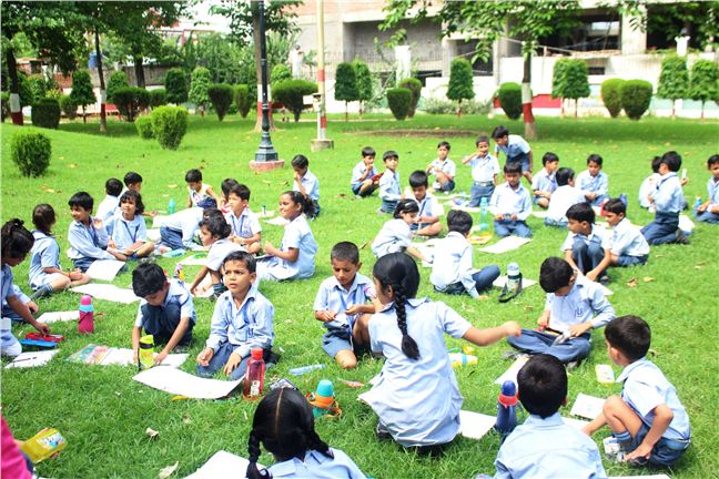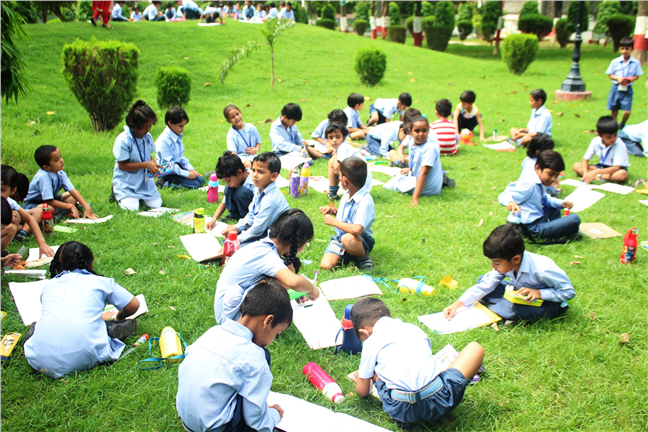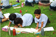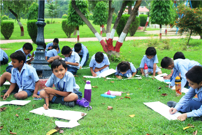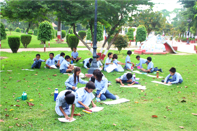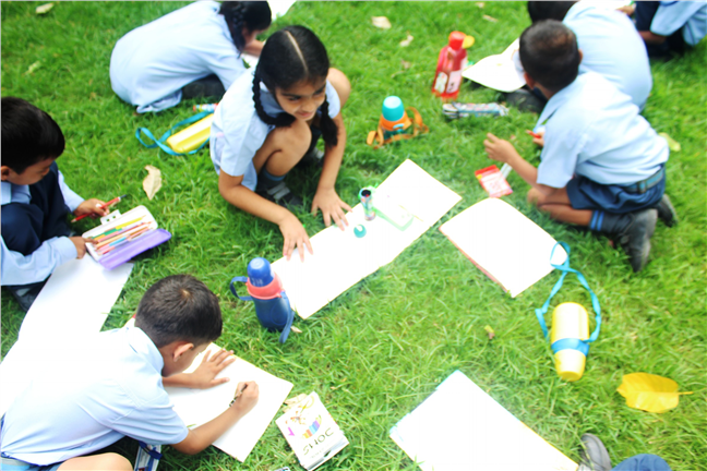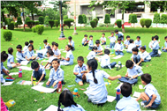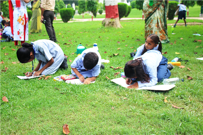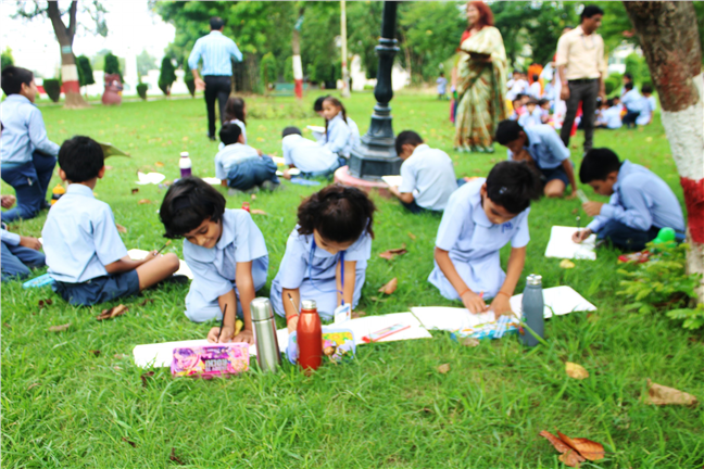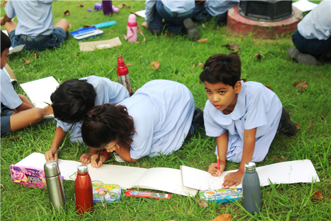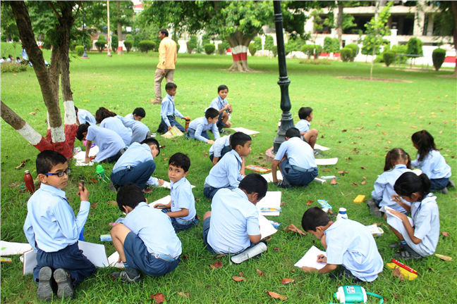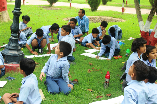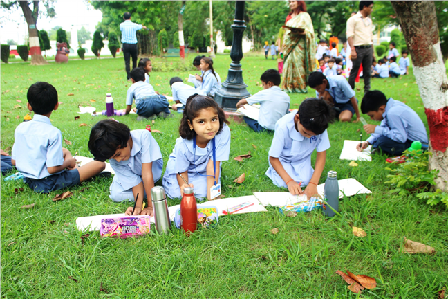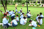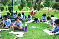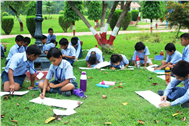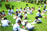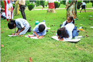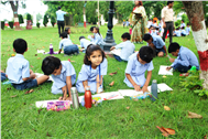 In order to explore and admire beauty children of class P.G. to II had gone for a nature walk to Kalindi park. It was a marvellous experience. Children enjoyed a lot. They sat in nature lap and portray its beauty in their drawing books, played treasure hunt etc.