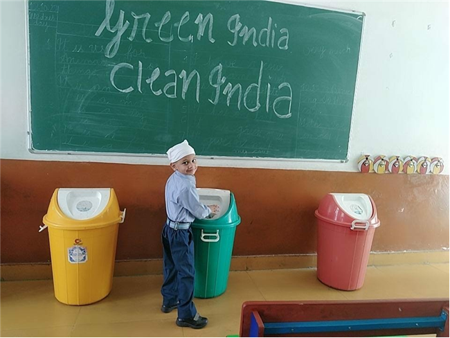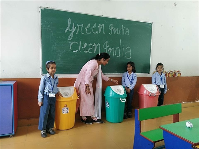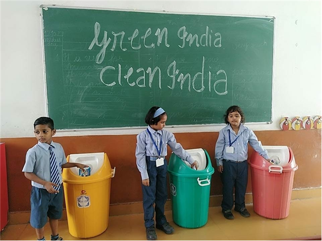 The main objective of Swacchta pakhwada is to aware the citizens of the country of their utmost priority and responsibility towards cleanliness in the nearby surroundings and spread of filth and infectious parasites In this drive students of Pre-primary took the oath to keep their surrounding clean and encourage others also to keep their surroundings clean. Also they were taught how to put garbage in the dustbin, the use of Red, Blue and Green Dustbins.