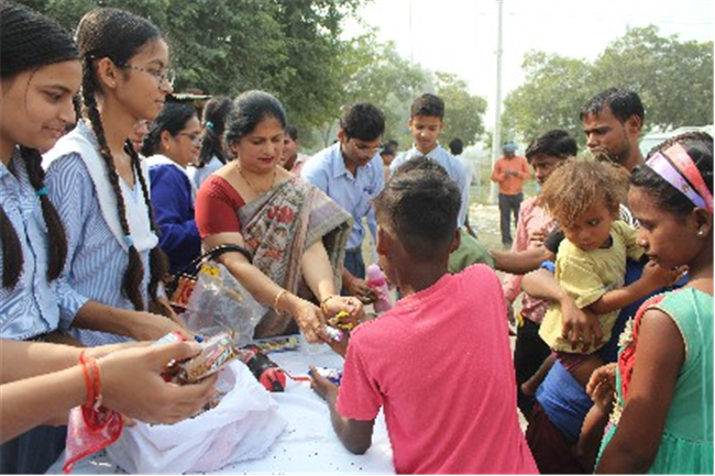 Description: The festival of lights, Deewali, has all the charm, grandeur and splendor that illuminates our hearts and minds while also promoting the much needed peace, harmony and brotherhood in our society. In a way it is the celebration, the awareness and awareness of inner light which has the power to outshine darkness and clear all the obstacles in life. To light up the darkness and to bring happiness and comfort into the lives under privileged people, this Diwali Lucknow Public School Kalindi Park branch, took up philanthropic initiative under the banner titled “Joy of Giving”. Talking about this initiative, Mrs. Manisha N Pathak, Principal, Lucknow Public School Kalindi Park said, “This initiative is a two pronged approach. On one hand we have been able to bring happiness and joy to the under privileged families by delivering the joy boxes which have been prepared out of love and compassion. While on the other hand, by getting the students involved we have been able to teach them that it’s our responsibility to help those who cannot help themselves. So we are helping the needy and teaching our children strong moral values at the same time. It’s a win- win!!! .” The joy boxes full of clothes, dry fruits, namkeens, biscuits, candles, roasted chana, jaggery and several other items of daily use brought smile on the faces of the less privileged ones. We chose to conduct this event on Diwali to get children involved in doing something good and productive and help them understand the true meaning of Diwali. The slum dwellers were also made aware of public hygiene, spread of communicable diseases and ways to prevent it. In the end, we are extremely thankful to parents, students and teaching staff who have donated generously and have made this initiative a successful event.