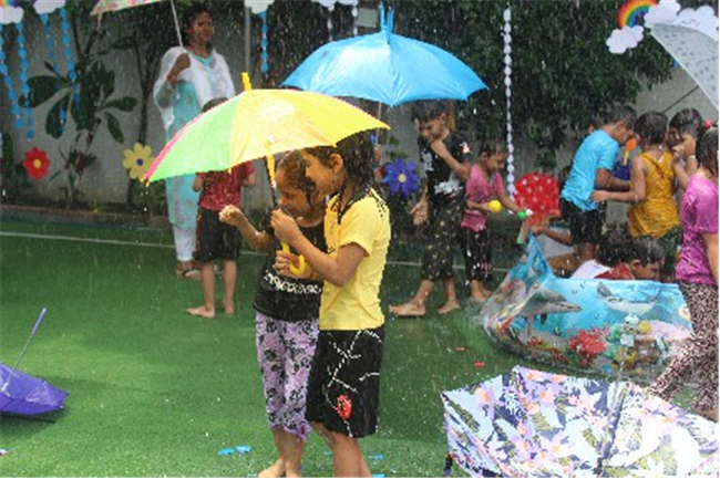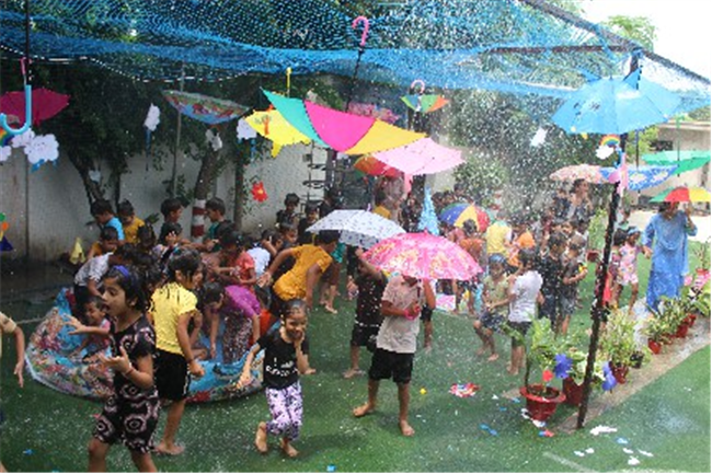 A fun-filled Rain Dance Party was organized on 23rd July 2025 (Wednesday) for the children. The area was decorated with colourful umbrellas different types of props like rainy bow , flowers cloud with drops and plants. Kids enjoyed dancing under water sprays with music, celebrating the joy of the rainy season. It was a refreshing and enjoyable experience for all.
