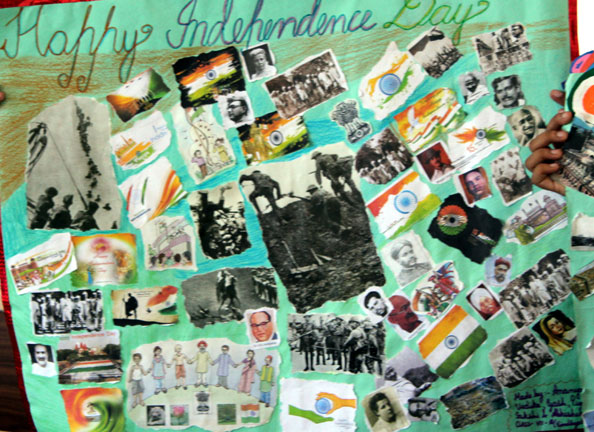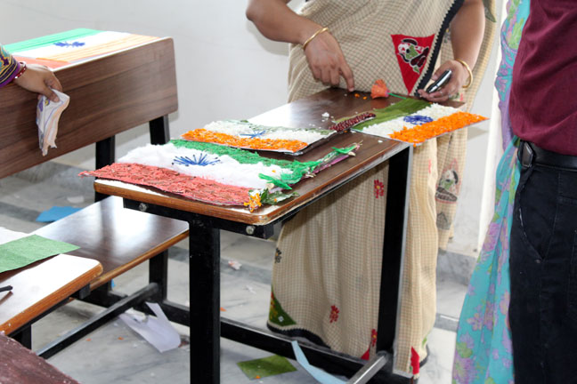 Description: Collage and Flag making competition was held in our school in which senior class students took keen interest in making flag and collage with the materials like stick, and beans etc. The students participated in the competition to show their love and affection for their nation. The students whole heartedly made and gave their best in making flag and also the collage that shows the Independent india with various culture and religion, states forming together one great nation "INDIA". JAI HIND........ JAI HIND............. JAI HIND