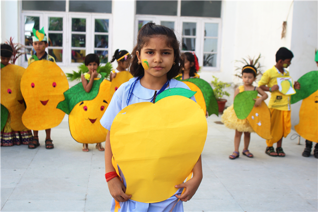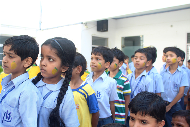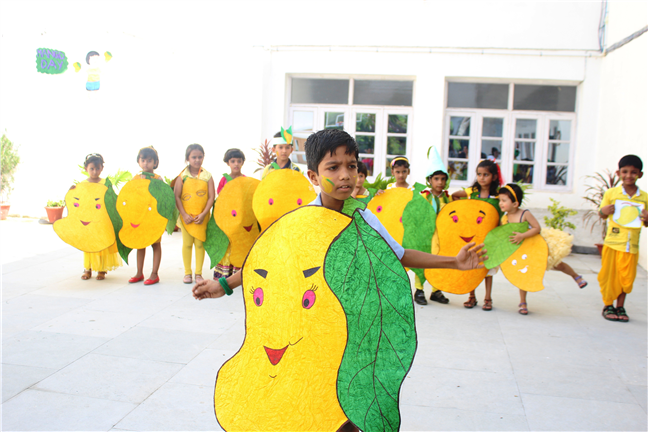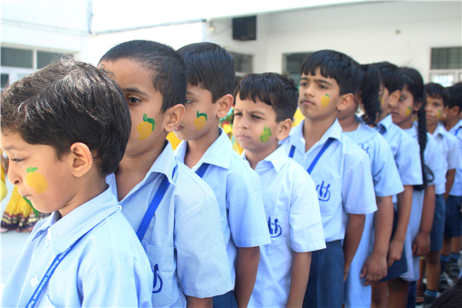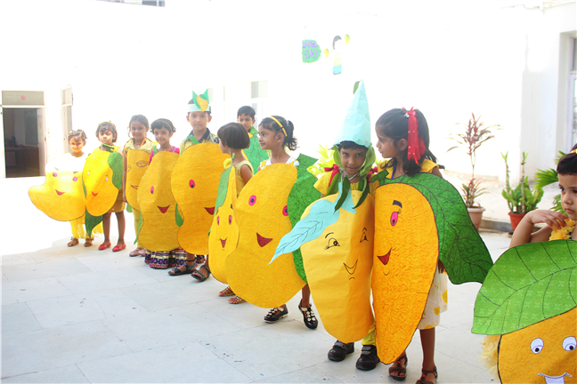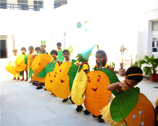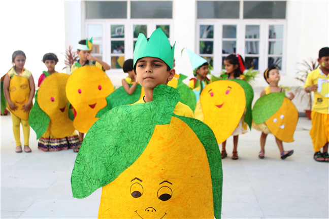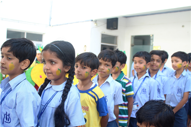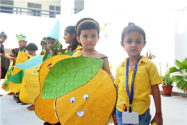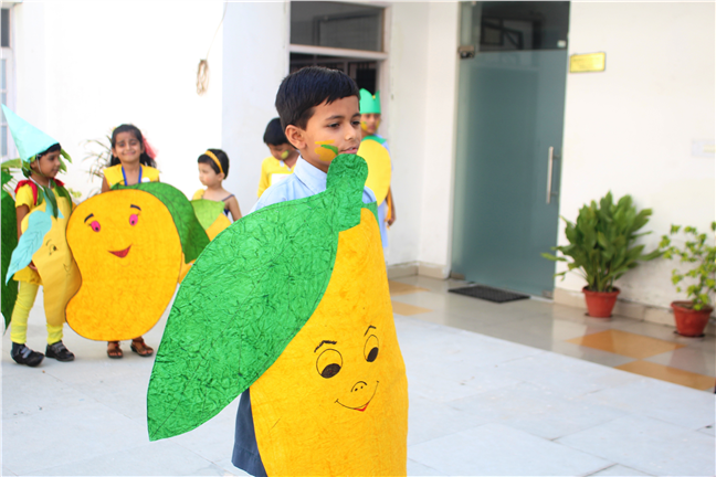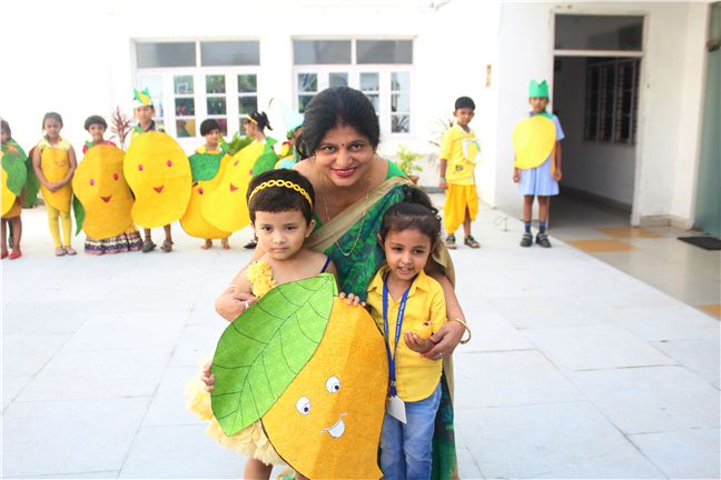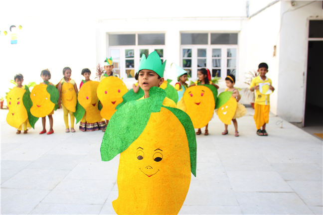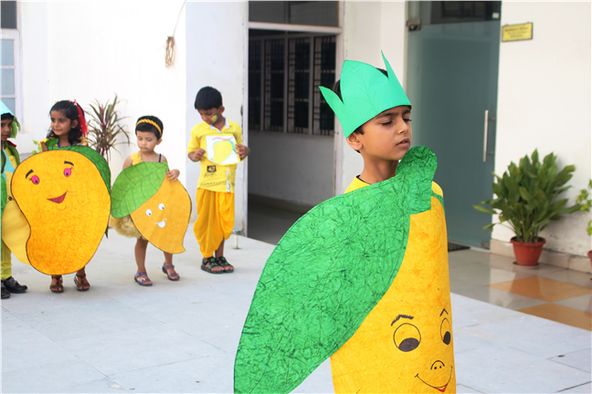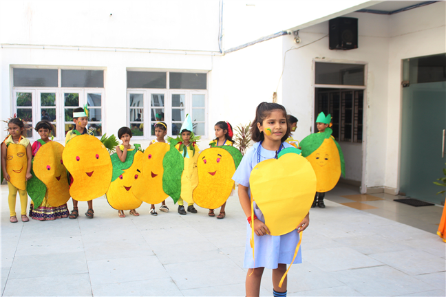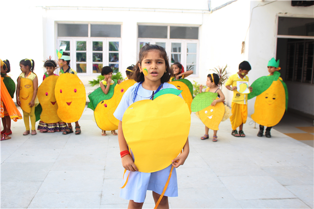Description: Mango Day was celebrated by Pre-Primary Section with the help of their teachers and support of their parents. Students were dressed in yellow colour. All the students of Pre-Primary section were looking very cheerful in their yellow dress. They enthusiastically participated in the activity.