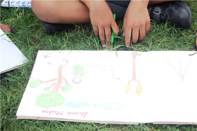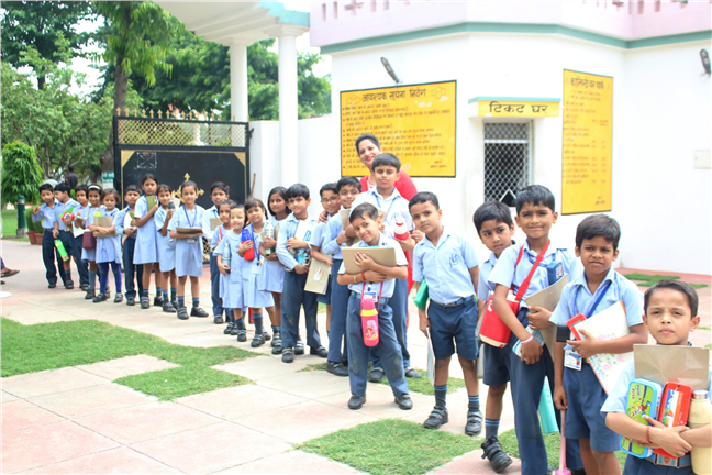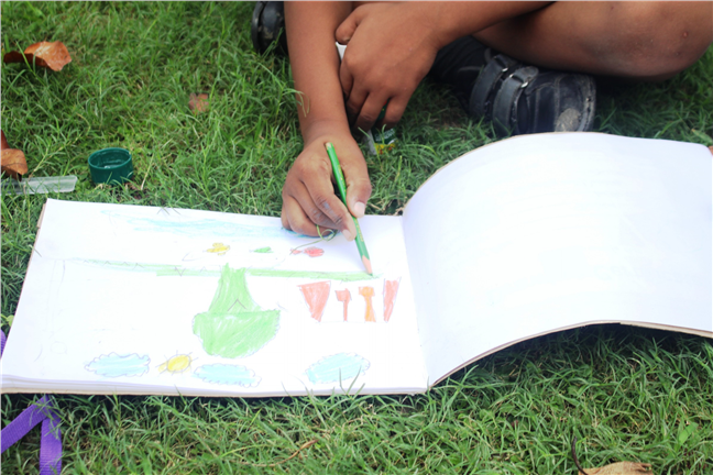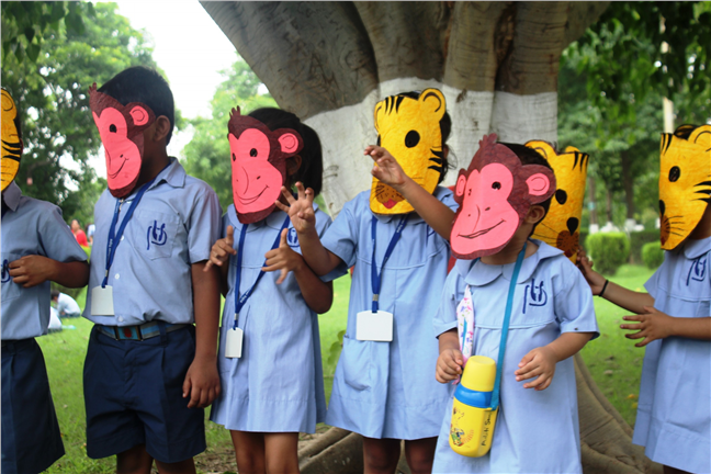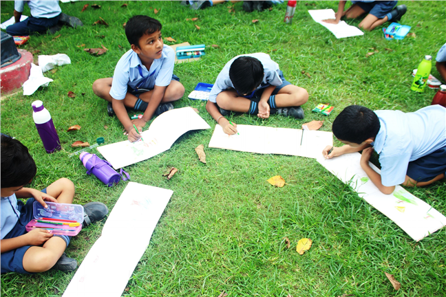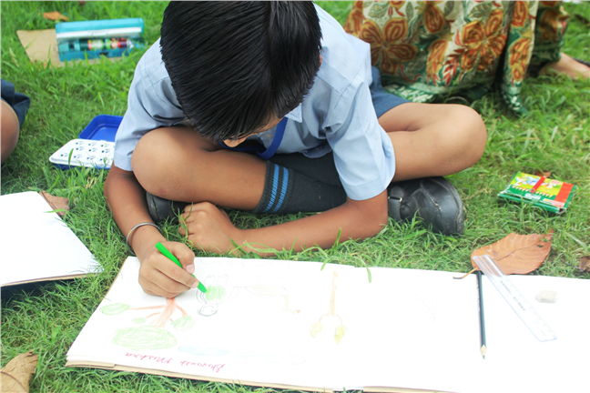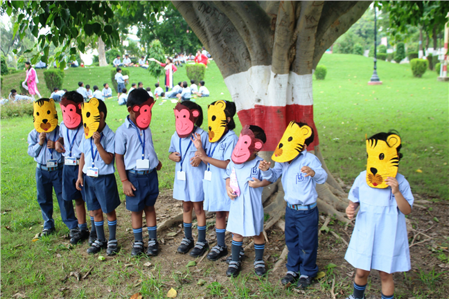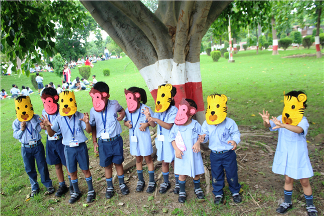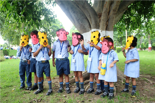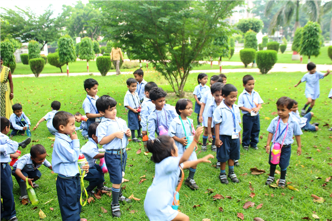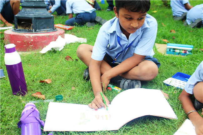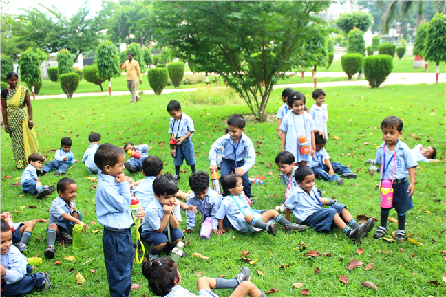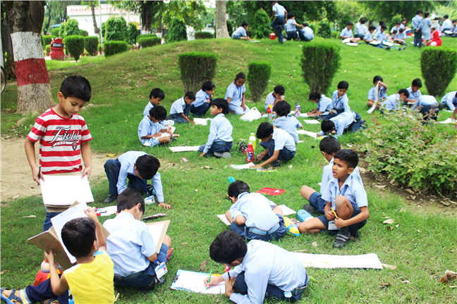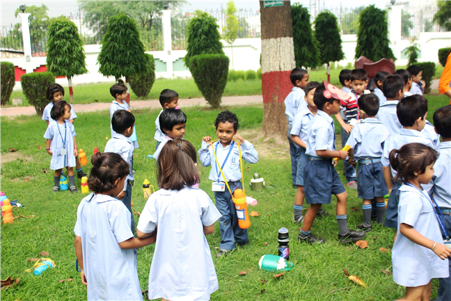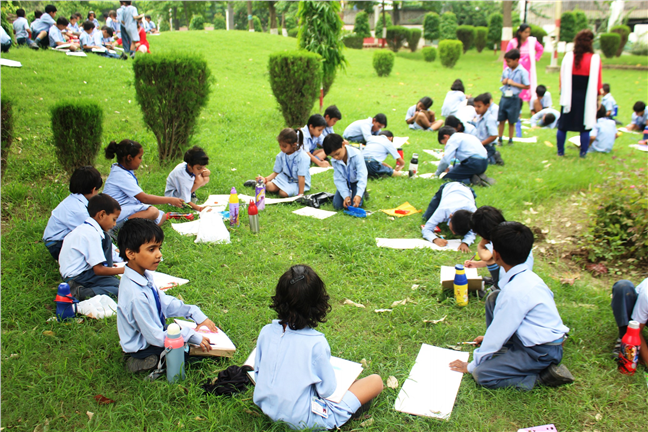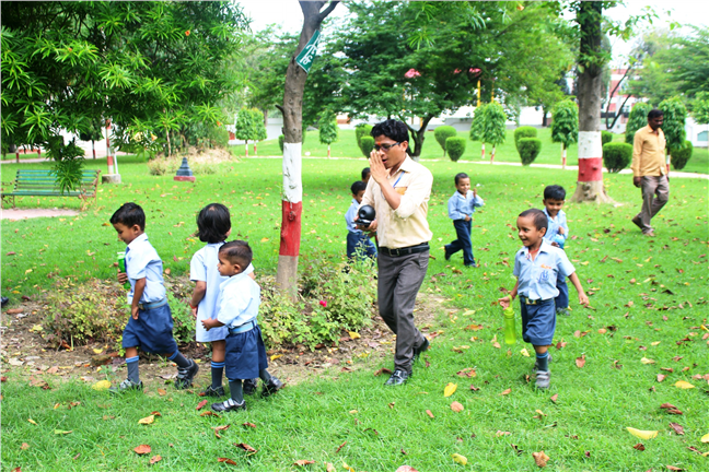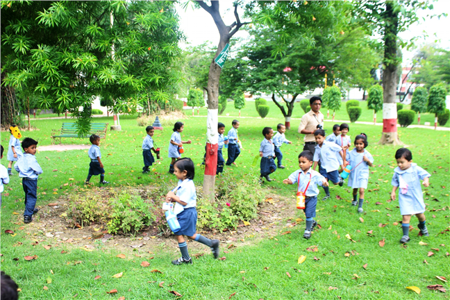 Description: In order to explore and admire beauty children of class P.G. to II had gone for a nature walk to Kalindi park. It was a marvellous experience. Children enjoyed a lot. They sat in nature lap and portray its beauty in their drawing books, played treasure hunt etc.
