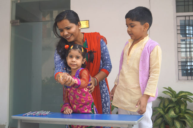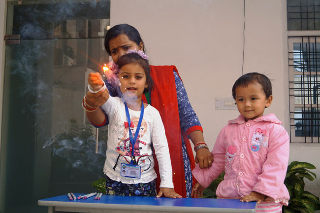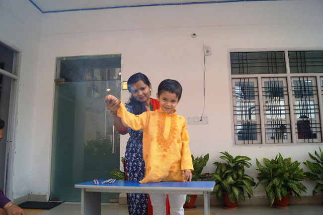 Description: Diwali Celebration was held in our school on 21st Oct 2015, in which Junior classes upto 5th standard prepared a play that was displayed on 21st Oct in front of all the other classes. The play was on the return of God Ram to his home with his wife Godess Sita and the people celebrated their return by lighting the candles and distributing sweets to everyone. The students were distributed sweets after the play was over and other students enjoyed the play and were excited to see the play again.