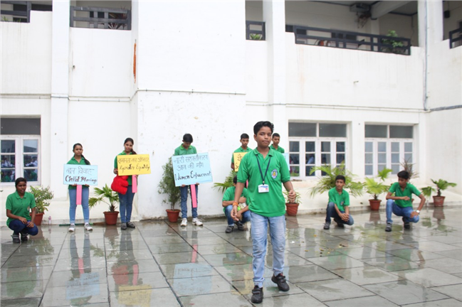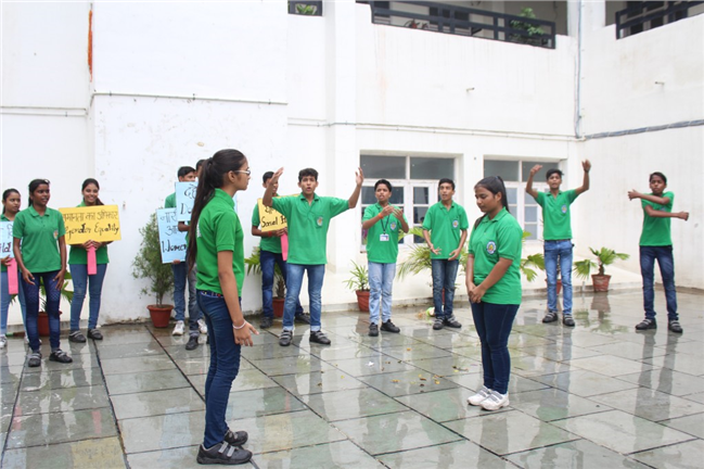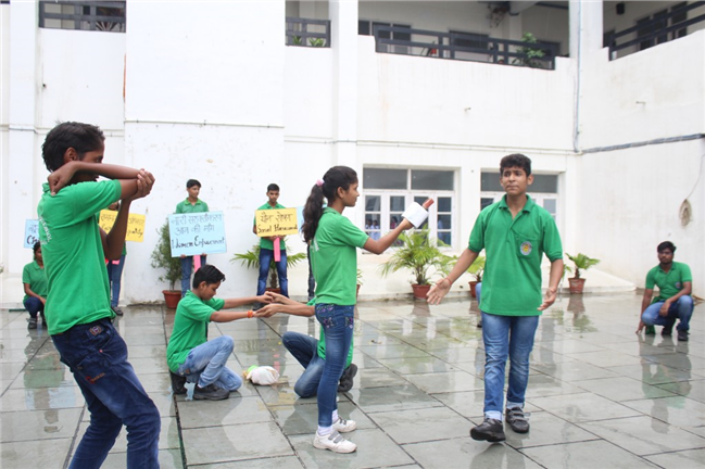 Description: An inter-house Nukkad Natak competition was organized in the school on 11th Aug’2018. The 4 houses actively participated in the Natak, highlighting various social issues like – Cleanliness, Drug abuse, Plastic, Pollution and women empowerment. The Result of the Competition was as follows- 1st – Vindhyachal House 2nd – Himalaya House 3rd – Aravali & Neelgiri House