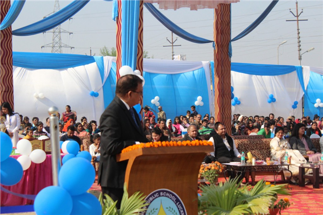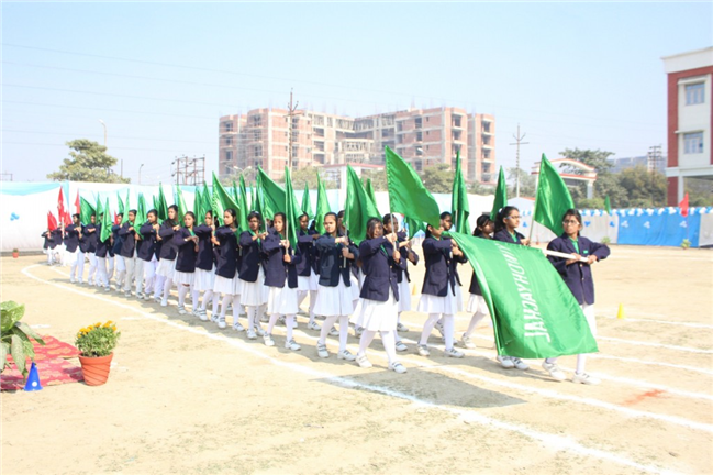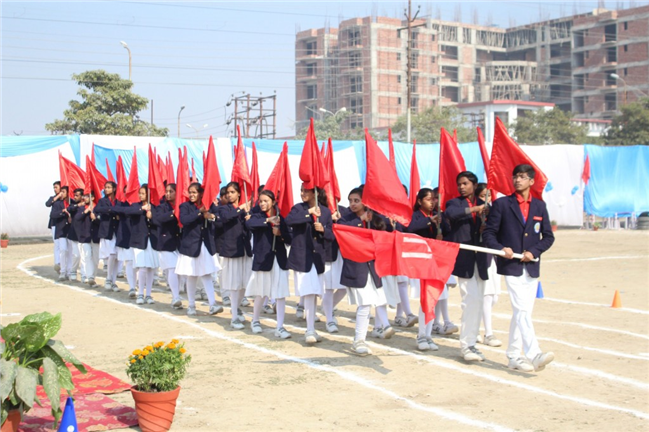 Description: The School has organized the Annual Sports Day "OORJA". The Event was organized on the traditional games of India such as Gilli Danda, Seven Tiles, Lemon Races. Hurdle race, Bhangra, Kukri Dance and many drills of Pre-Primary section added to the primary section students. It was all around full of interest and thrill to students to win for there representing houses.