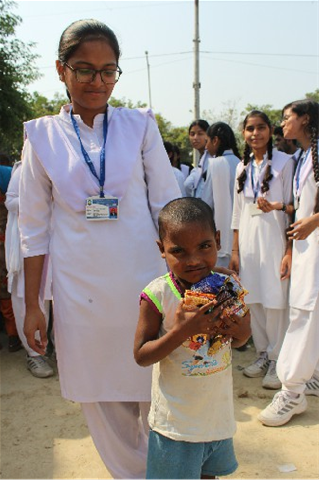 Description: The festival of lights, Deewali, has all the charm, grandeur and splendor that illuminates our hearts and minds while also promoting the much needed peace, harmony and brotherhood in our society. In a way it is the celebration, the awareness and awareness of inner light which has the power to outshine darkness and clear all the obstacles in life. To light up the darkness and to bring happiness and comfort into the lives under privileged people, this Diwali Lucknow Public School Kalindi Park branch, took up philanthropic initiative under the banner titled “Joy of Giving”. Talking about this initiative, Mrs. Manisha N Pathak, Principal, Lucknow Public School Kalindi Park said, “This initiative is a two pronged approach. On one hand we have been able to bring happiness and joy to the under privileged families by delivering the joy boxes which have been prepared out of love and compassion. While on the other hand, by getting the students involved we have been able to teach them that it’s our responsibility to help those who cannot help themselves. So we are helping the needy and teaching our children strong moral values at the same time. It’s a win- win!!! .” The joy boxes full of clothes, dry fruits, namkeens, biscuits, candles, roasted chana, jaggery and Ayurvedic Medicinal items like pudinhara, kadha sachet, whole spices likes cloves, cardamom, cinnamon, cumin, turmeric etc and several other items of daily use brought smile on the faces of the less privileged ones. We chose to conduct this event on Diwali to get children involved in doing something good and productive and help them understand the true meaning of Diwali. We also arranged for awareness programs to cater the vector borne diseases by using Ayurvedic Species and herbs which are commonly found in our households. The slum dwellers were also made aware of public hygiene, spread of communicable diseases and ways to prevent it. In the end, we are extremely thankful to parents, students and teaching staff who have donated generously and have made this initiative a successful event.