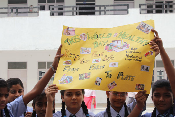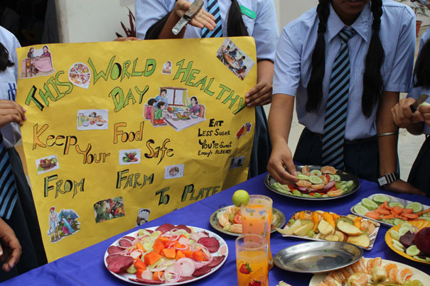 Description: The World Health is a global health awareness day celebrated every year on 7th April under the sponsorship of World Health Organisation (WHO). In 1948, the WHO held the first worrld health assembly. The Assembly decided to celebrate 7th April of each year with effect from 1950 as the world health day. The aim of celebrating this day is to draw world wide attention to a subject of major importance to global health each year. With an objective of drawing the attention of students towards health awareness our school organised a cooking without fire copetition where students demonstrated their skill of preparing healthy food with the help of fruits, sprouts and juice etc. The student shared their own ideas and were also guided by our teachers. Results of the competitions were as follows : 1st Position - Aravali, 2nd Position - Vindhyanchal, 3rd Position - Himalaya, 4th Position - Neelgiri