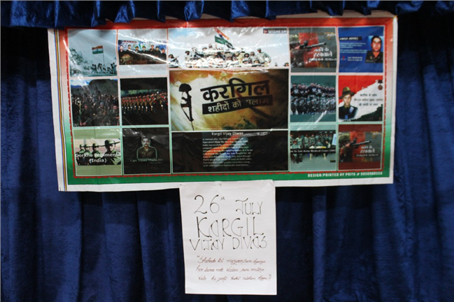 Description: KARGIL VICTORY DAY was celebrated in the school campus on 26th July 2018. Students of class IX to XII has actively participated in the event, Student has performed a marvelous skit on the victory of indian army on Tiger Hill. It was all-around very enthusiastic and patriotic event.