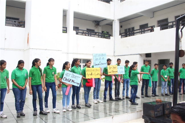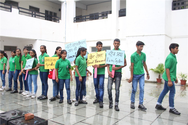 Description: An inter-house Nukkad Natak competition was organized in the school on 11th Aug’2018. The 4 houses actively participated in the Natak, highlighting various social issues like – Cleanliness, Drug abuse, Plastic, Pollution and women empowerment. The Result of the Competition was as follows- 1st – Vindhyachal House 2nd – Himalaya House 3rd – Aravali & Neelgiri House