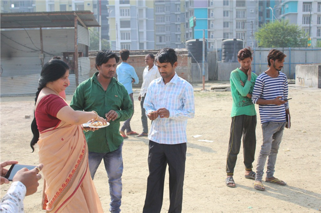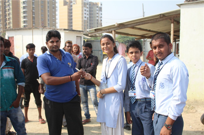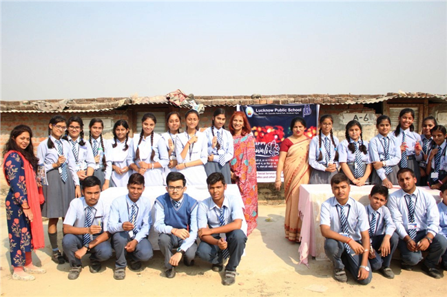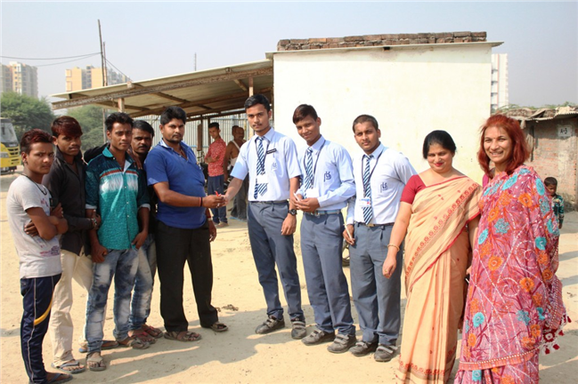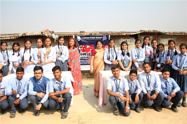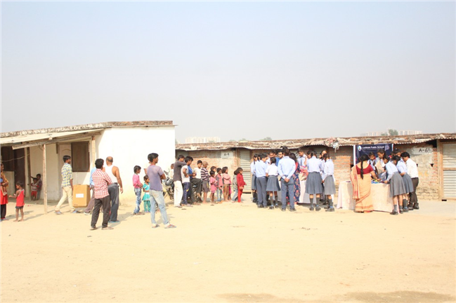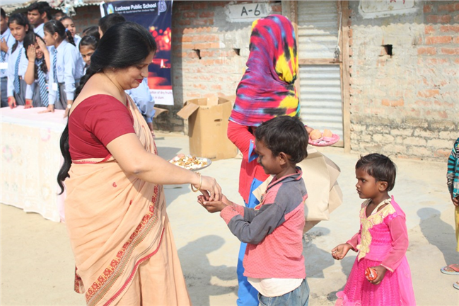 Description: Social Service Club of LUCKNOW PUBLIC SCHOOL, Kalindi park brought smile to the faces of underprivileged, poor children by distributing dry fruits, toys, candles and Diyas on the occasion of Deepawali. Bathing soap and washing powder were also distributed. The principal, Mrs. Manisha told the children and their parents to keep clean an blessed them to stay happy.